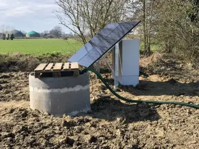Für ein Naturschutzprojekt zur Förderung von Kiebitz, Uferschnepfe und anderen gefährdeten Wiesenbrütern wurde eine autarke Stromversorgung für die Bewässerung von Feuchtwiesen umgesetzt.